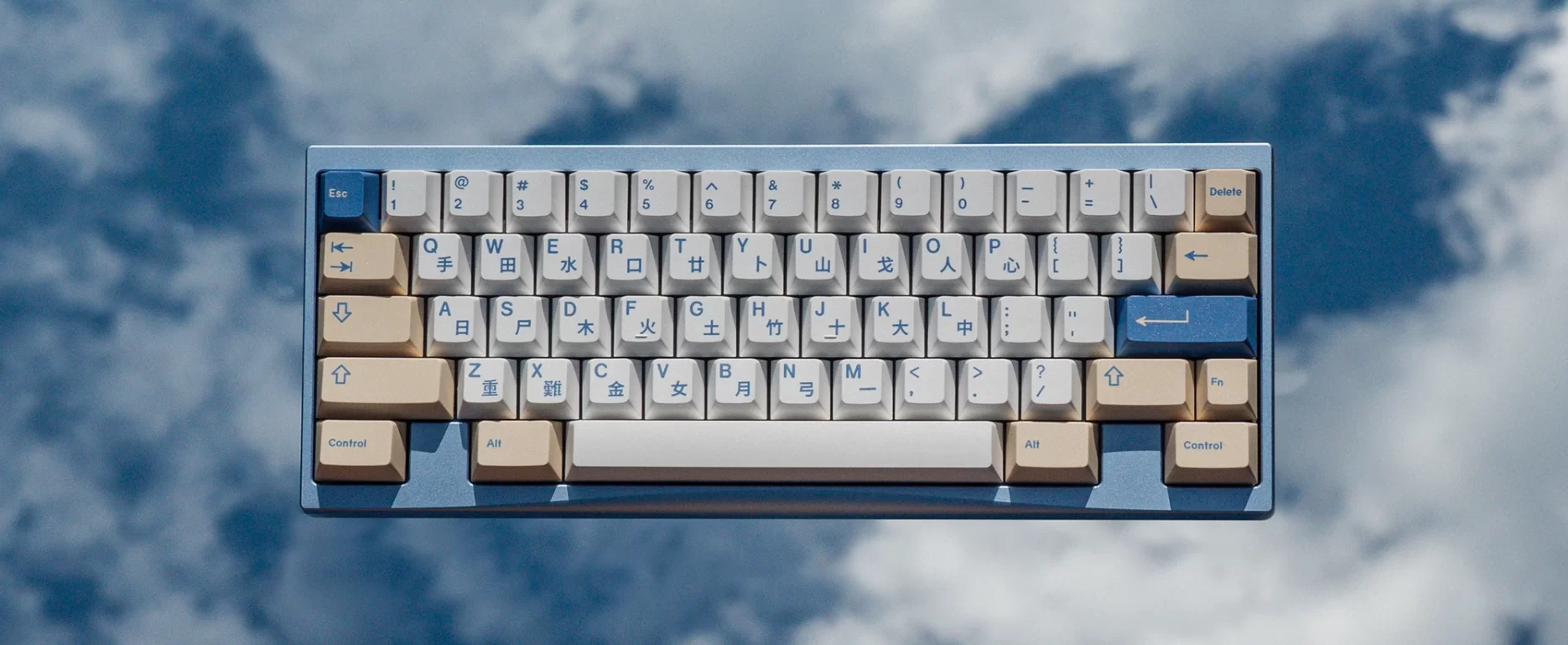 8° chassis with minimal front height for maximum typing comfort. Integrated 8 point silicone force break to prevent unpleasant resonance. Sound travels uninterrupted between PCB and bottom aluminum case, producing a uniform and bright sound signature.